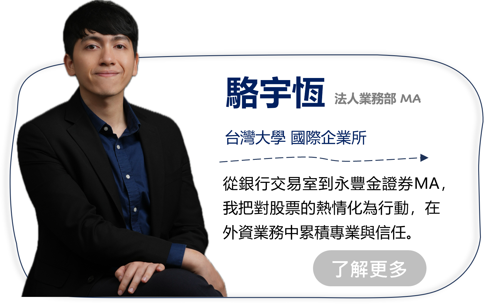Q2|非商管相關科系,可以申請永豐金證券MA計畫嗎?▼可以!金融市場變化超快,十年前的投資方式早已不同!永豐金證券引領數位潮流,歡迎各領域人才加入MA計畫,展現創意與專業。所以別擔心科系背景,我們的學長姐也有非商管出身,在這裡同樣能大放異彩!