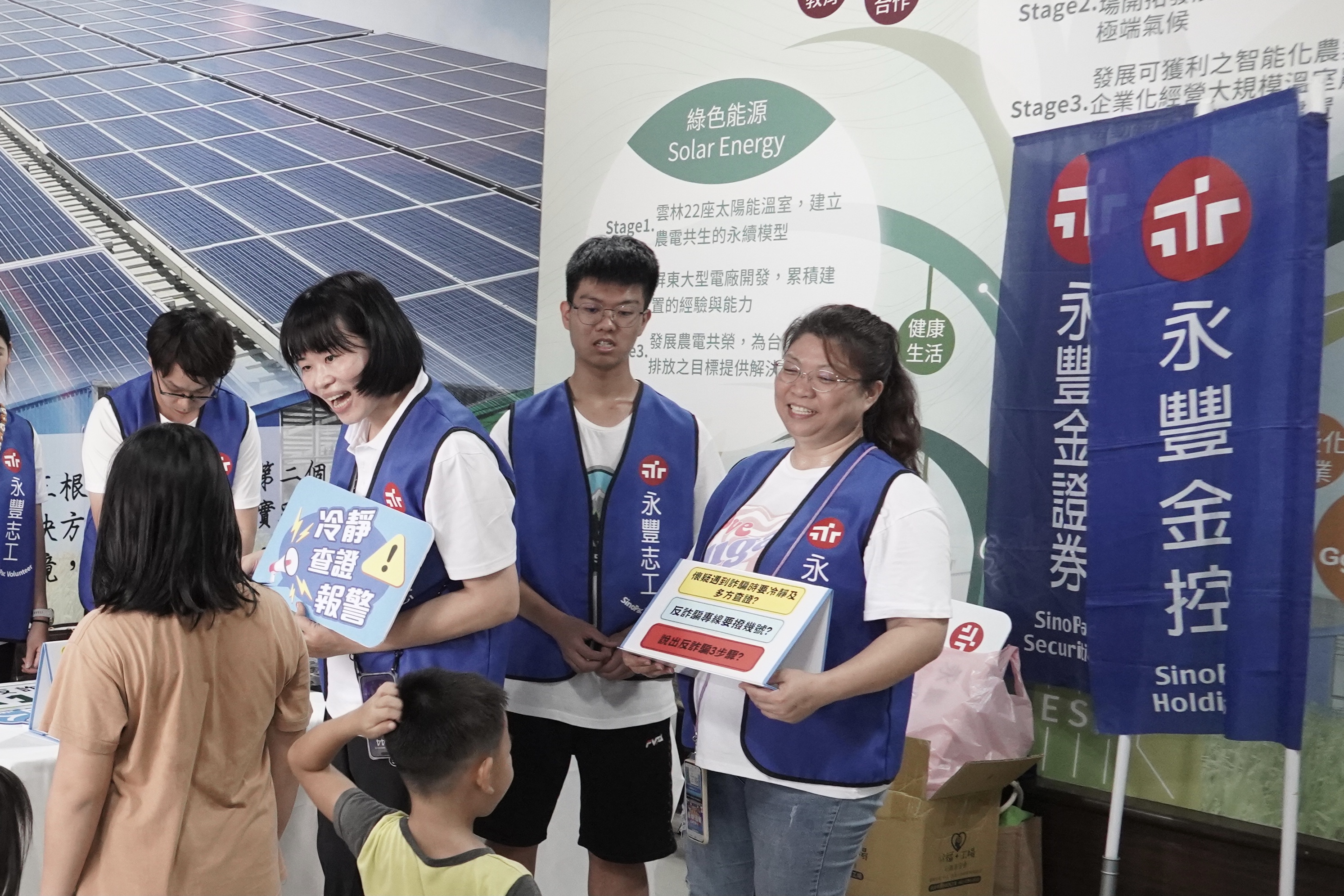 【2024.07.30,台北訊】炎炎夏日熱情公益行,永豐金證券第5度前往雲林傳遞幸福及溫暖,總經理張李章隆帶領30位志工,7月在麥寮舉辦「友善土地」生態之旅,邀請家扶中心110位親子參與,體驗農業與綠色能源的結合、太陽能農業系統運作、感受食農教育土地到餐桌的意涵。並以趣味遊戲教育防詐騙知識,活動中並以唐氏症基金會庇護商品與家扶家庭分享。以行動落實永續承諾,讓愛與善持續蔓延。